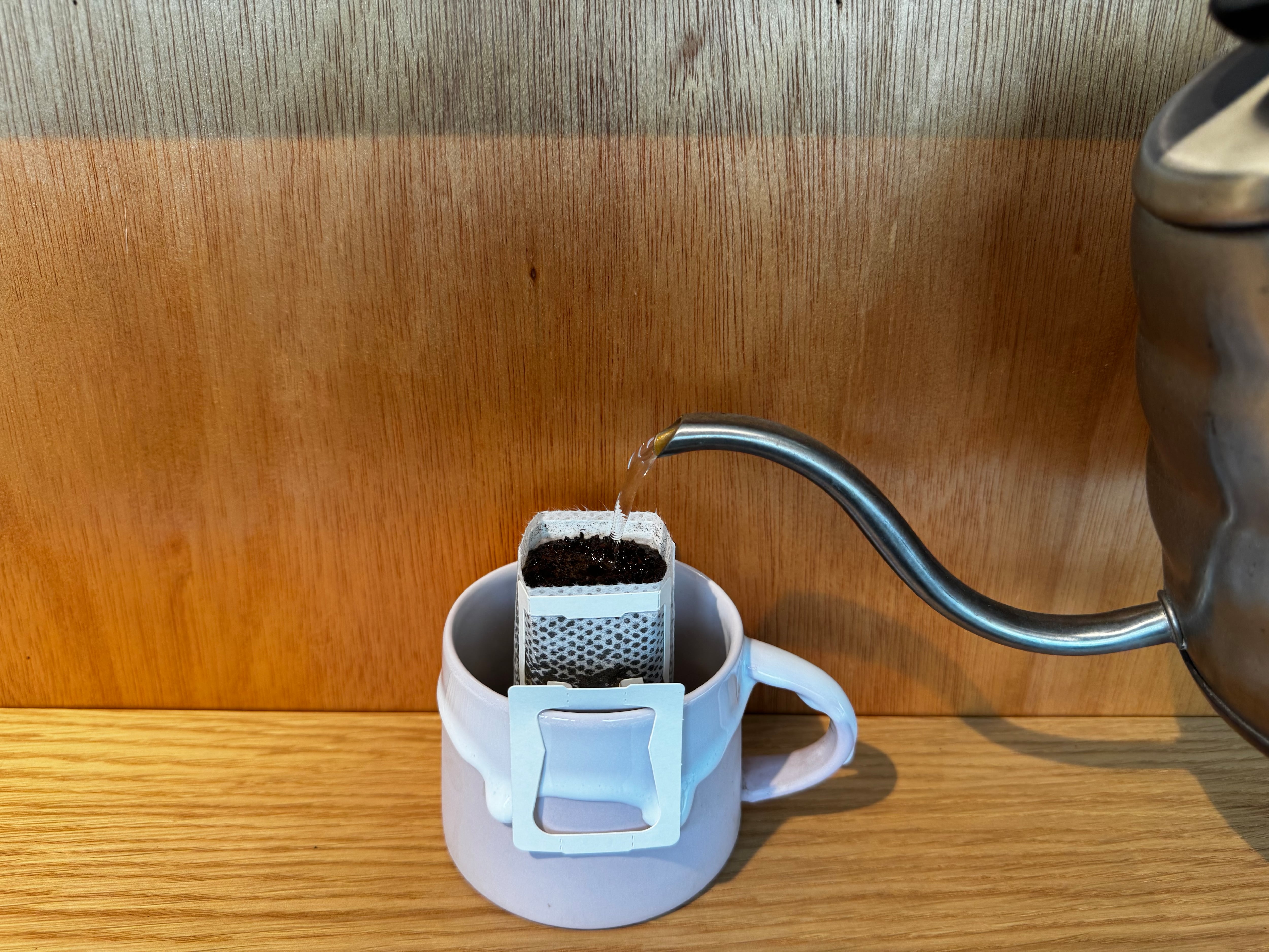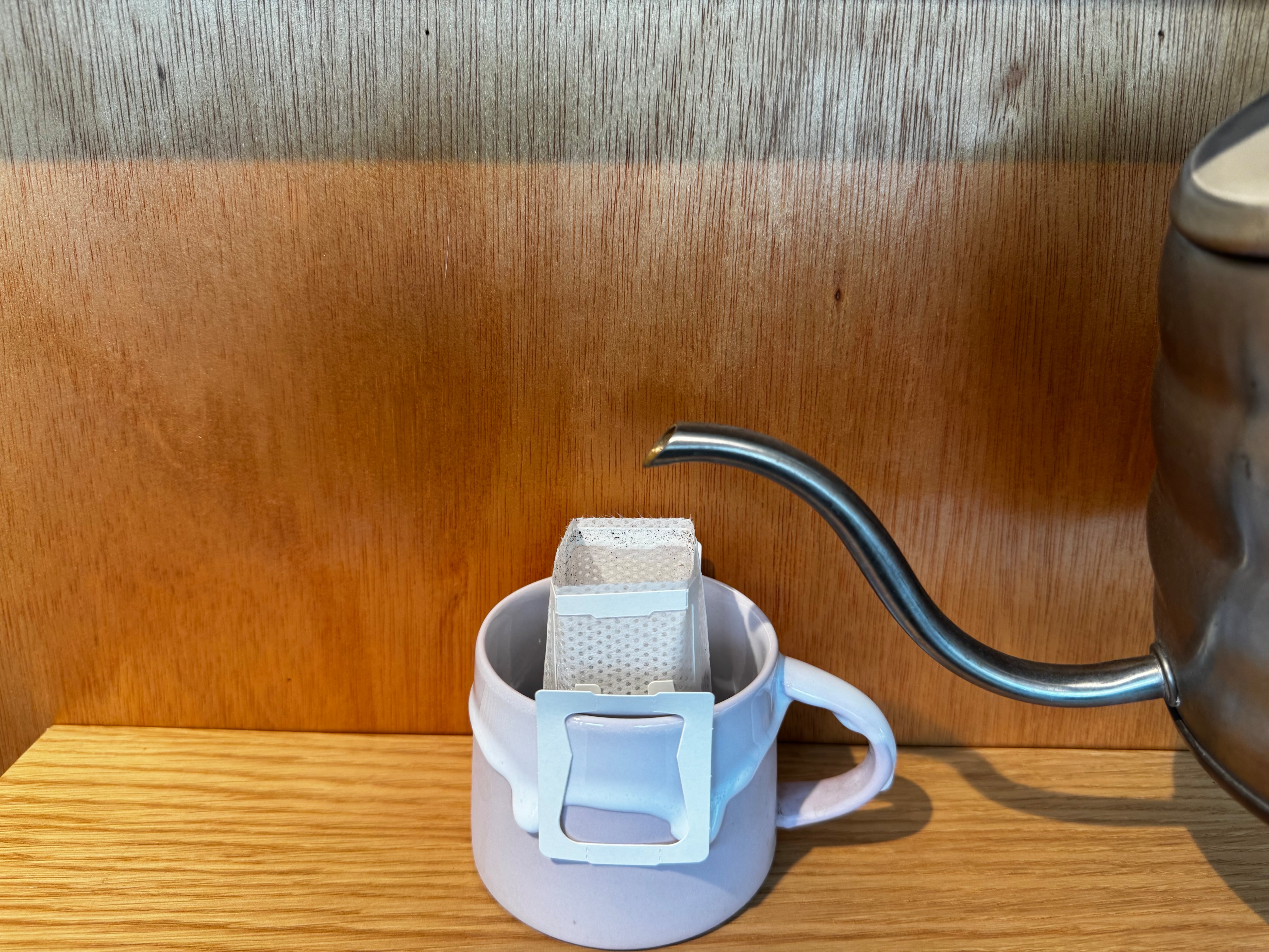 カップにのせて、お湯を注ぐだけで美味しいコーヒーが簡単に出来上がり。